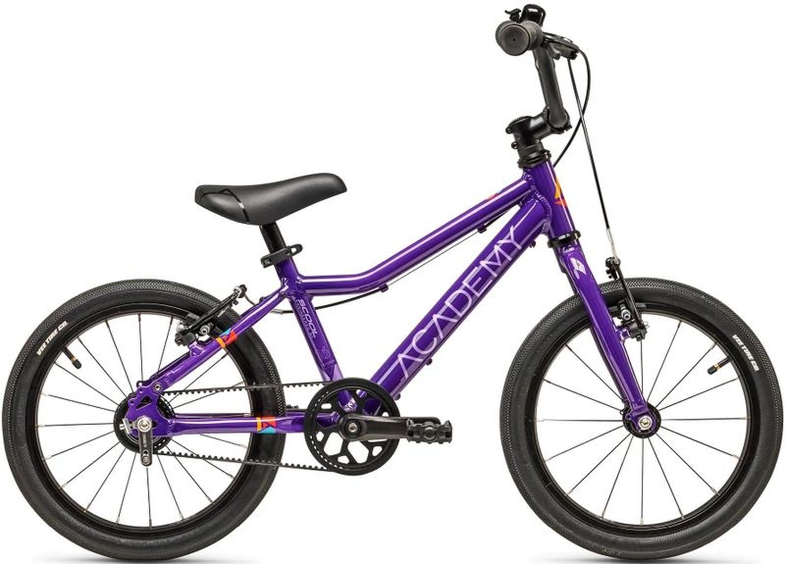 Das ACADEMY Grade 3 Belt 16R 1S Kinder Fahrrad ist ausgestattet mit einem Academy Tripple Butted Aluminium Rahmen, einer Aluminium Starrgabel, einer V-Bremse sowie der Freilauffunktion und Riemenantrieb.