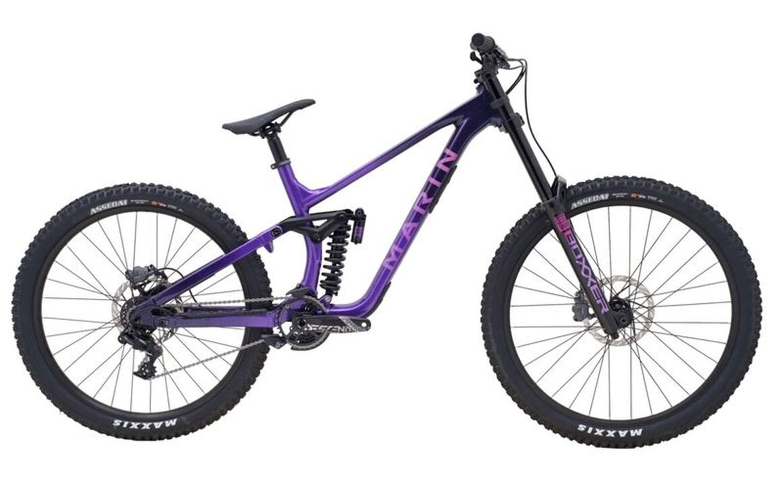 Das Marin Quake 29R Fullsuspension Downhill Mountain Bike ist ausgestattet mit einer RockShox Boxxer Federgabel, einer 7-Gang Kettenschaltung mit SRAM GX Schaltwerk, einer SRAM Maven Bronze Scheibenbremse und einem RockShox Vivid Coil Ultimate Dämpfer.